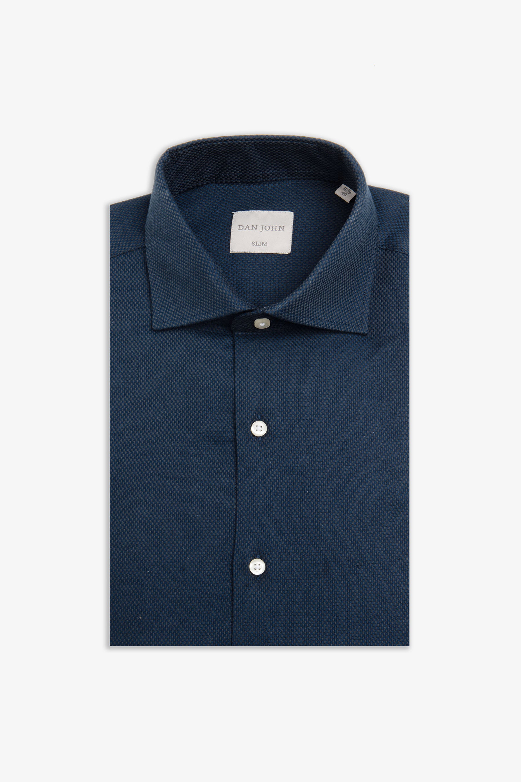 Formalna srajca iz super-kompaktnega bombaža, enobarvna teksturirana tkanina, ozek kroj, francoski ovratnik in manšete brez manšetnih gumbov.