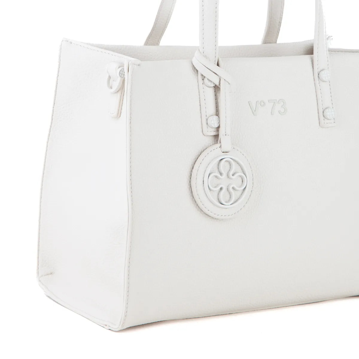 Nakupovalna torba 'VISIA' z minimalističnimi linijami, ki so obogatene z velikim logotipom v metalni barvi, izvedenim z visokofrekvenčno tehniko, in osvetljene z obeskom v svetlo zlati barvi. Na dnu je s povišanim zaključkom v italiku zapisan slogan "I am a responsible bag", ki poudarja etični pristop znamke. Material, iz katerega je torba izdelana, vključuje odstotek recikliranega poliestra iz post-potrošniških virov in odstotek recikliranega PU iz pred-potrošniških virov, medtem ko je podloga iz RPET, 100% recikliranega poliestra iz post-potrošniških virov. Na voljo so tudi usklajene denarnice, izdelane iz istih materialov in barv kot torbe, z znamčenim sloganom "I am a responsible bag" v notranjosti.